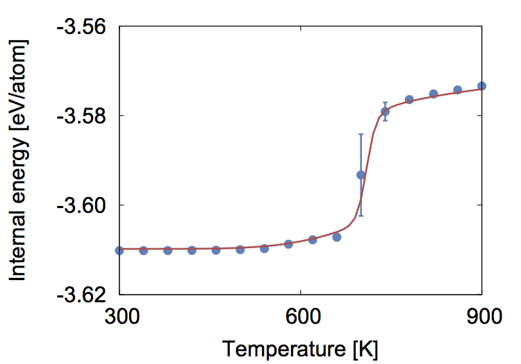 $$ P(\vec{\sigma}) \pi (\vec{\sigma} \to \vec{\sigma}') = P(\vec{\sigma}') \pi (\vec{\sigma}' \to \vec{\sigma}) $$今の原子配置から適当な異種原子同士を交換して1ステップとする